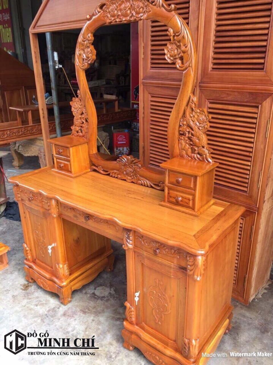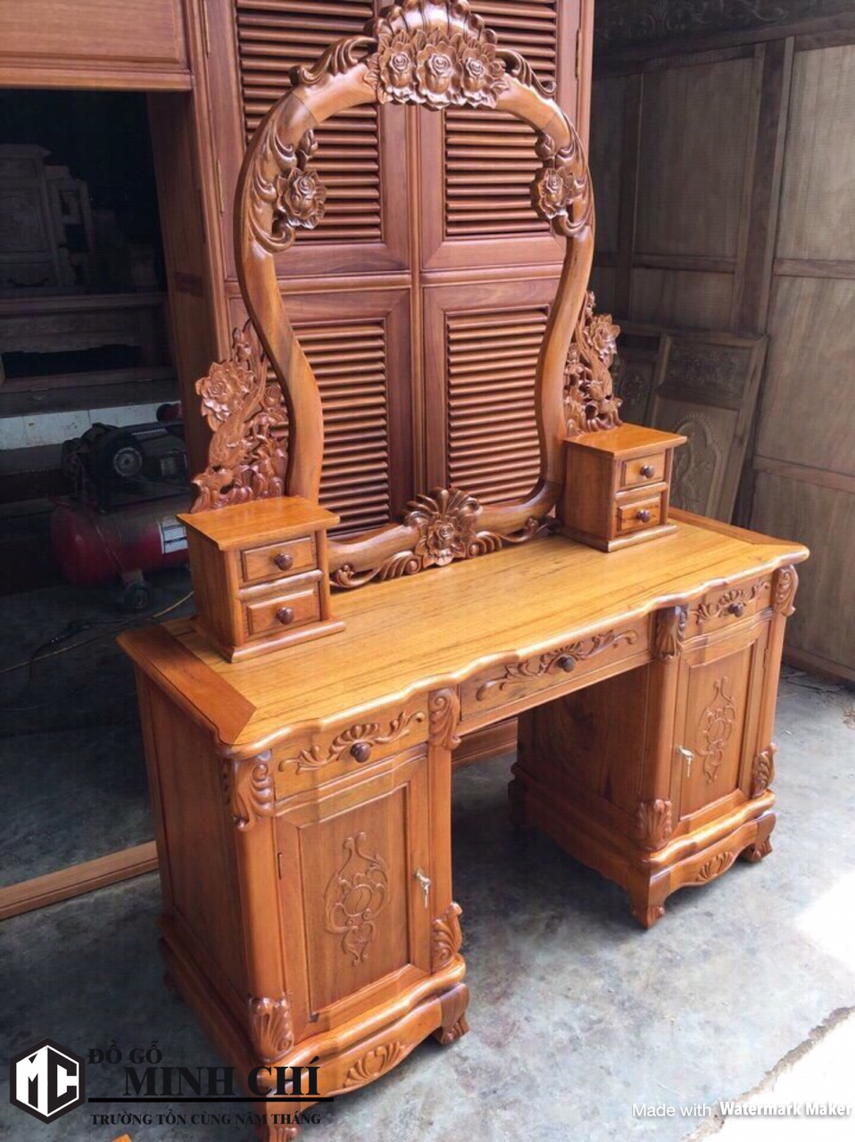 Bàn trang điểm Hoa Hồng hiện đại làm từ gỗ tự nhiên được coi là điểm nhấn tâm hồn trong không gian nội thất phòng ngủ. Mẫu Bàn trang điểm bằng gỗ luôn đòi hỏi sự hợp lý cả về mỹ thuật tới tính năng sử dụng.