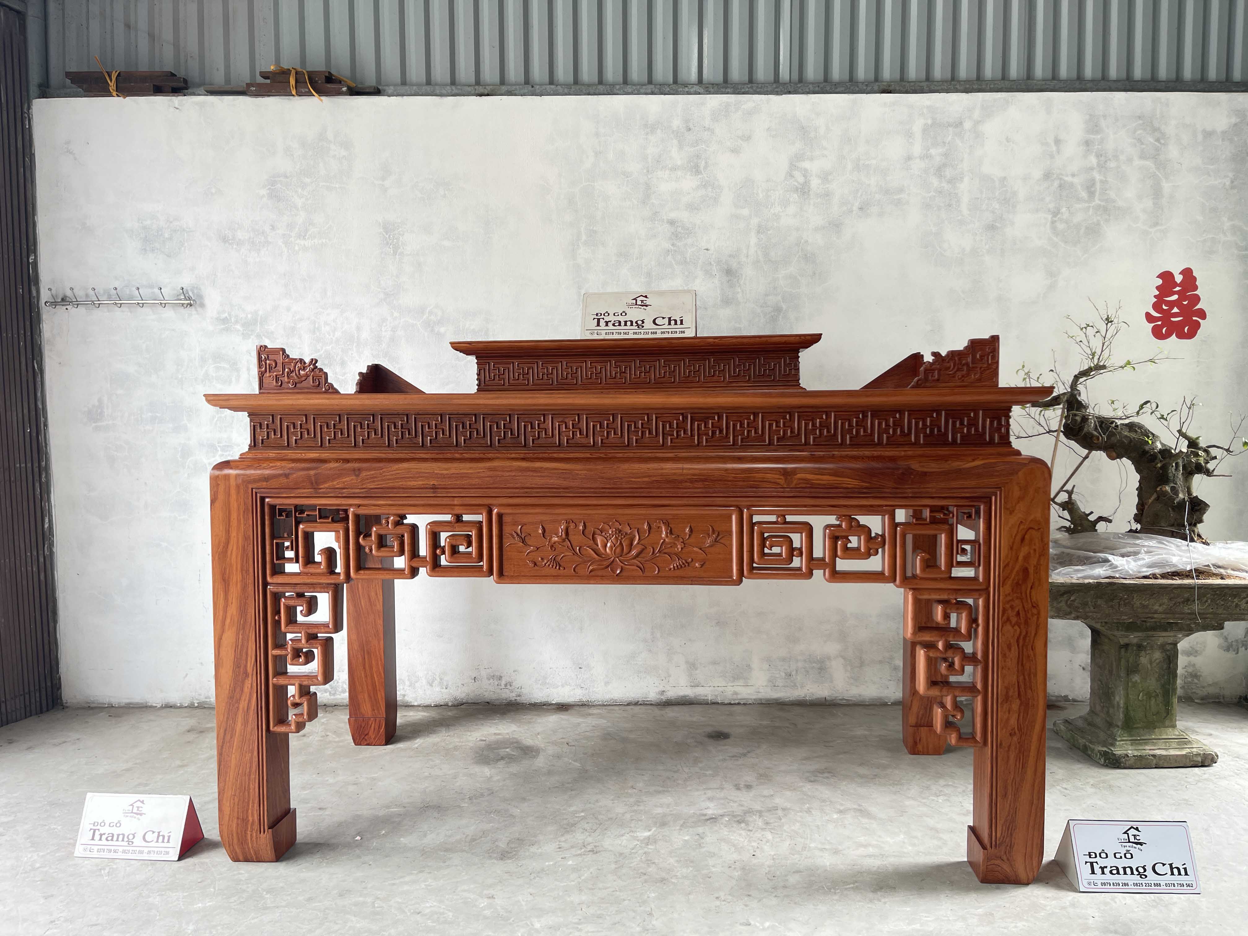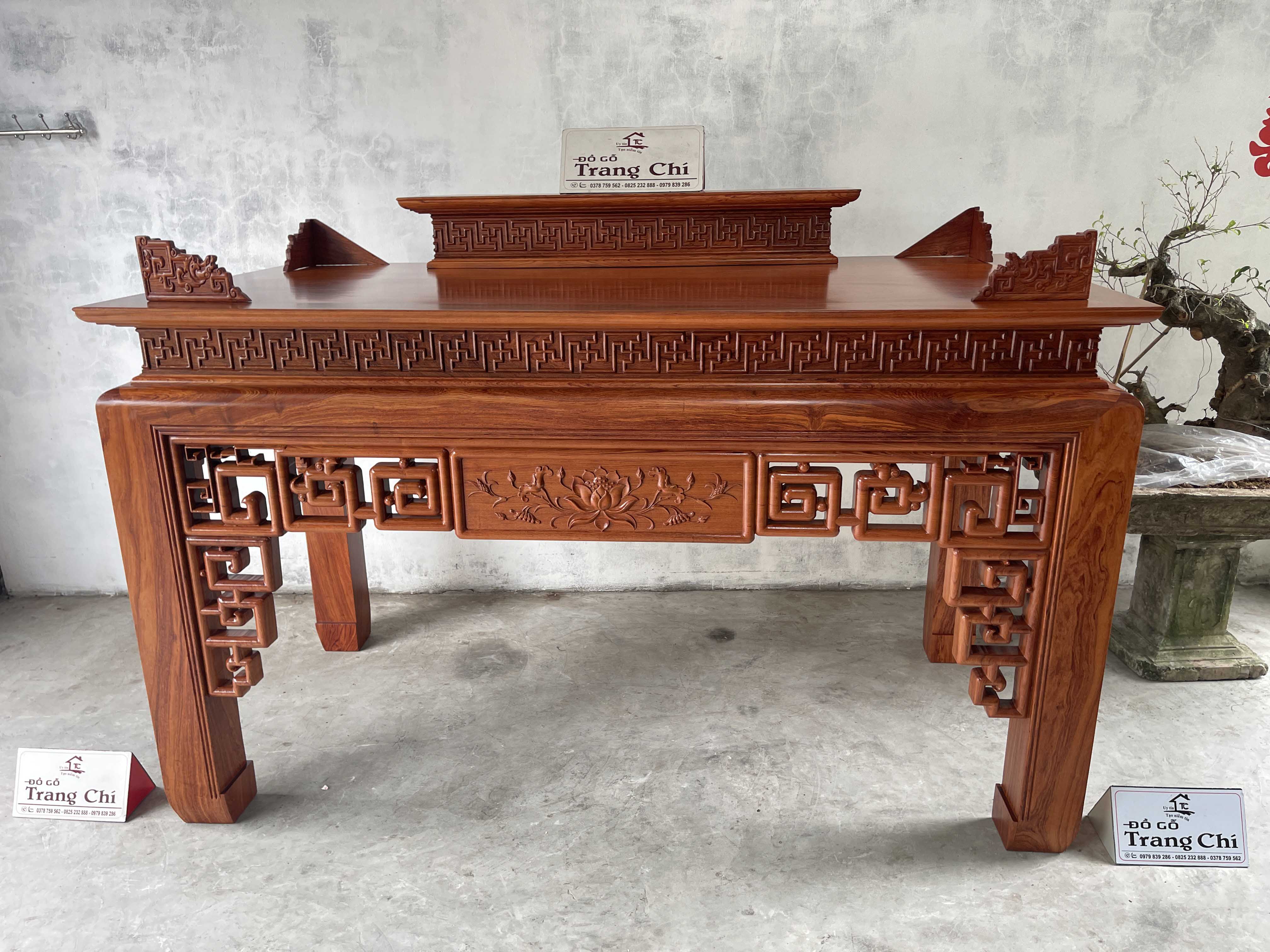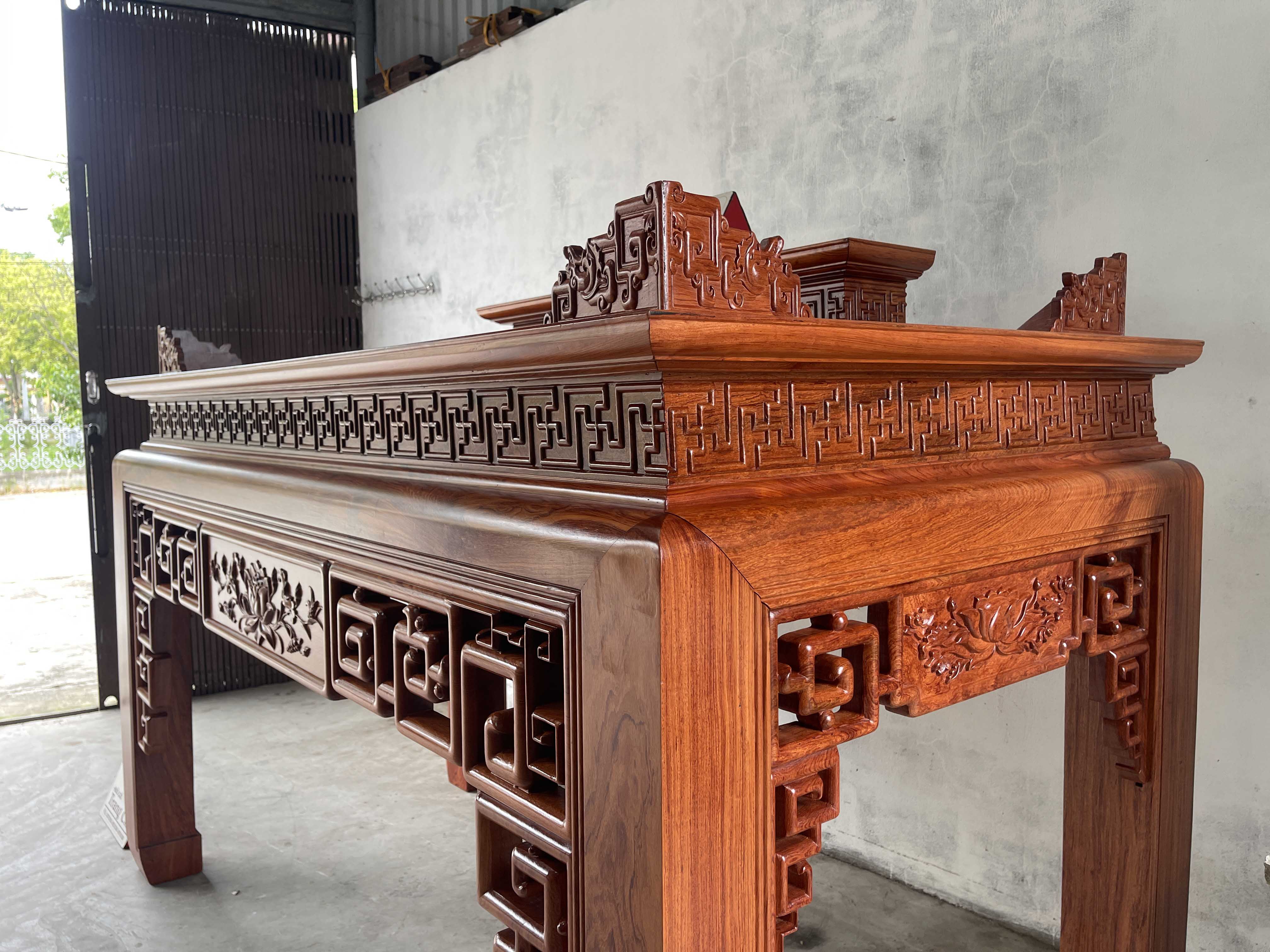 Hãng: Đồ Gỗ Minh Chíbáo giá bộ bàn thờ 217 x 127 x 107 gỗ hương đá được làm trên chất liệu gỗ hương đá nổi bật