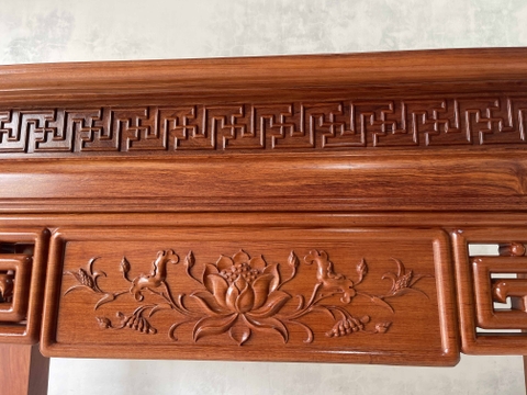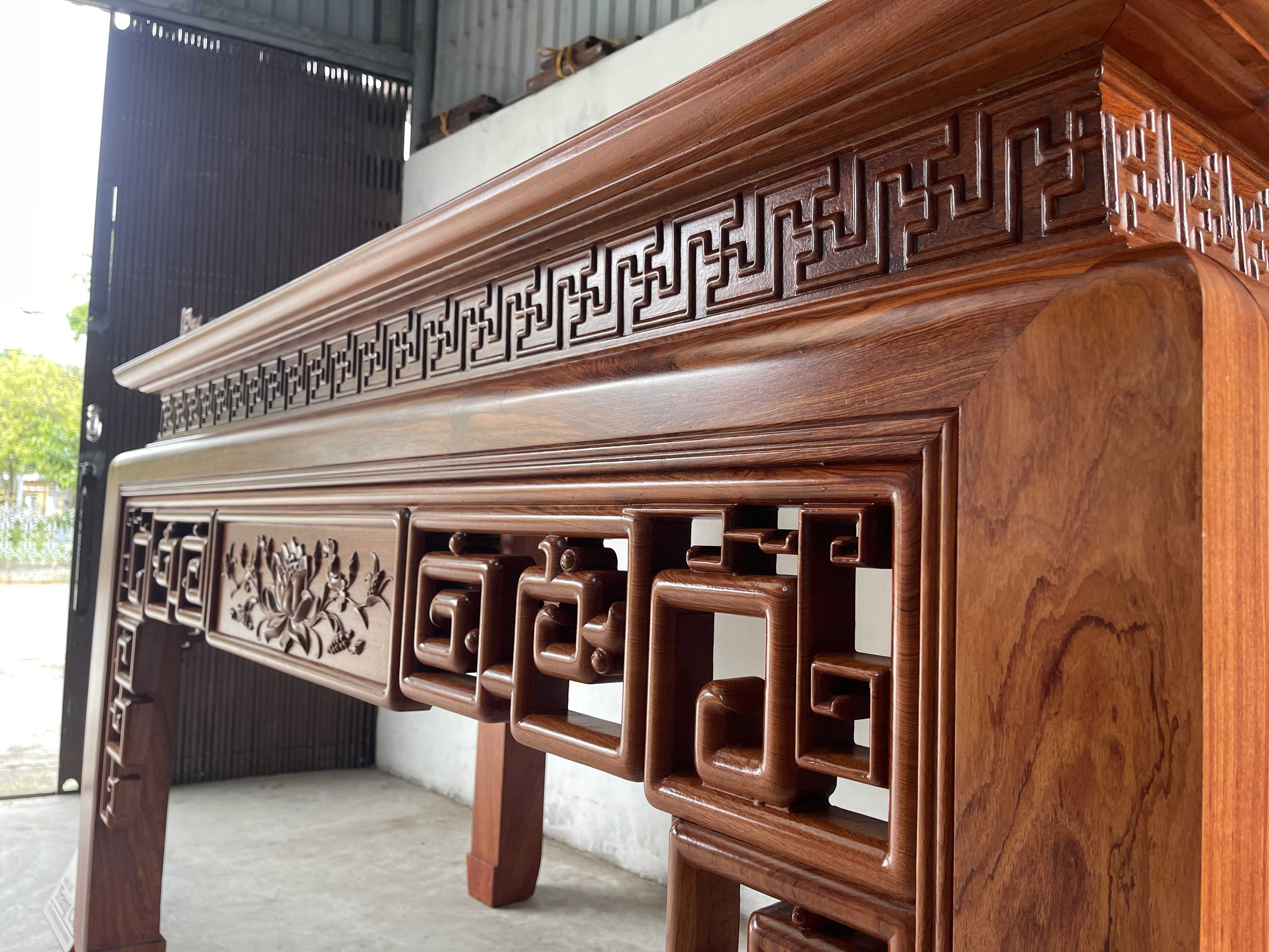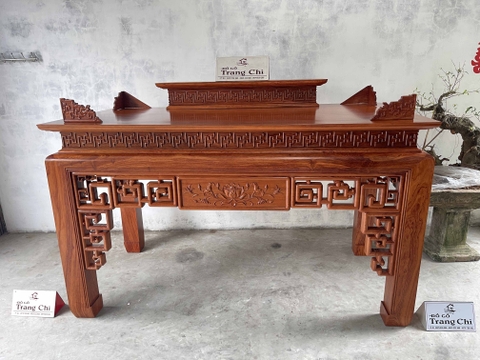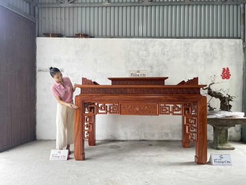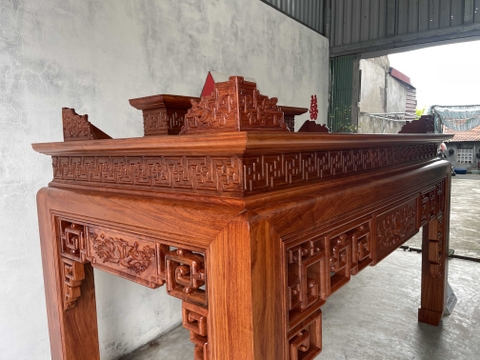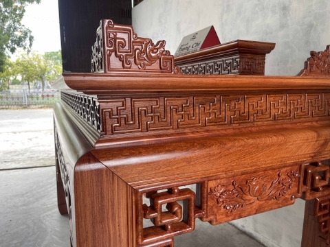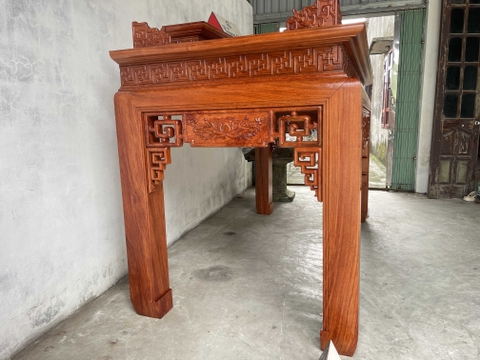 xin giới thiệu tới quý khách hàng mẫu Bàn Thờ Án Gian Gỗ Hương Đá 217 x 127 x 107 cm được làm trên chất liệu gỗ vân đẹp nổi bật và bền đẹp. Sản phẩm được làm dày dặn chân 14 cm, mặt 2 lá dày 1,4 cm. Thiết kế tháo rời tiện dụng những đường nét hoa văn, triện vánh thoáng được làm nổi bật trên bộ bàn thờ. Dưới đây là hình ảnh và thông tin chi tiết về sản phẩm