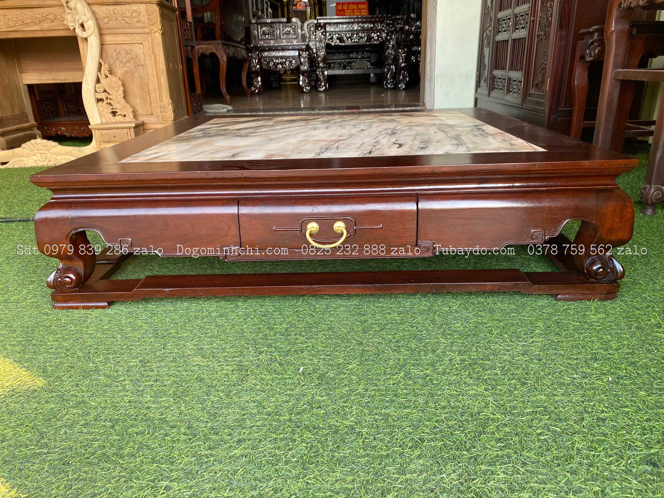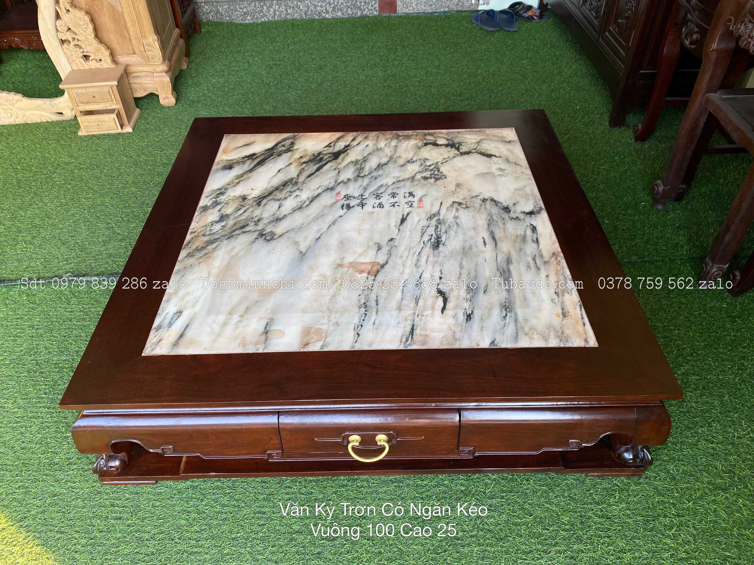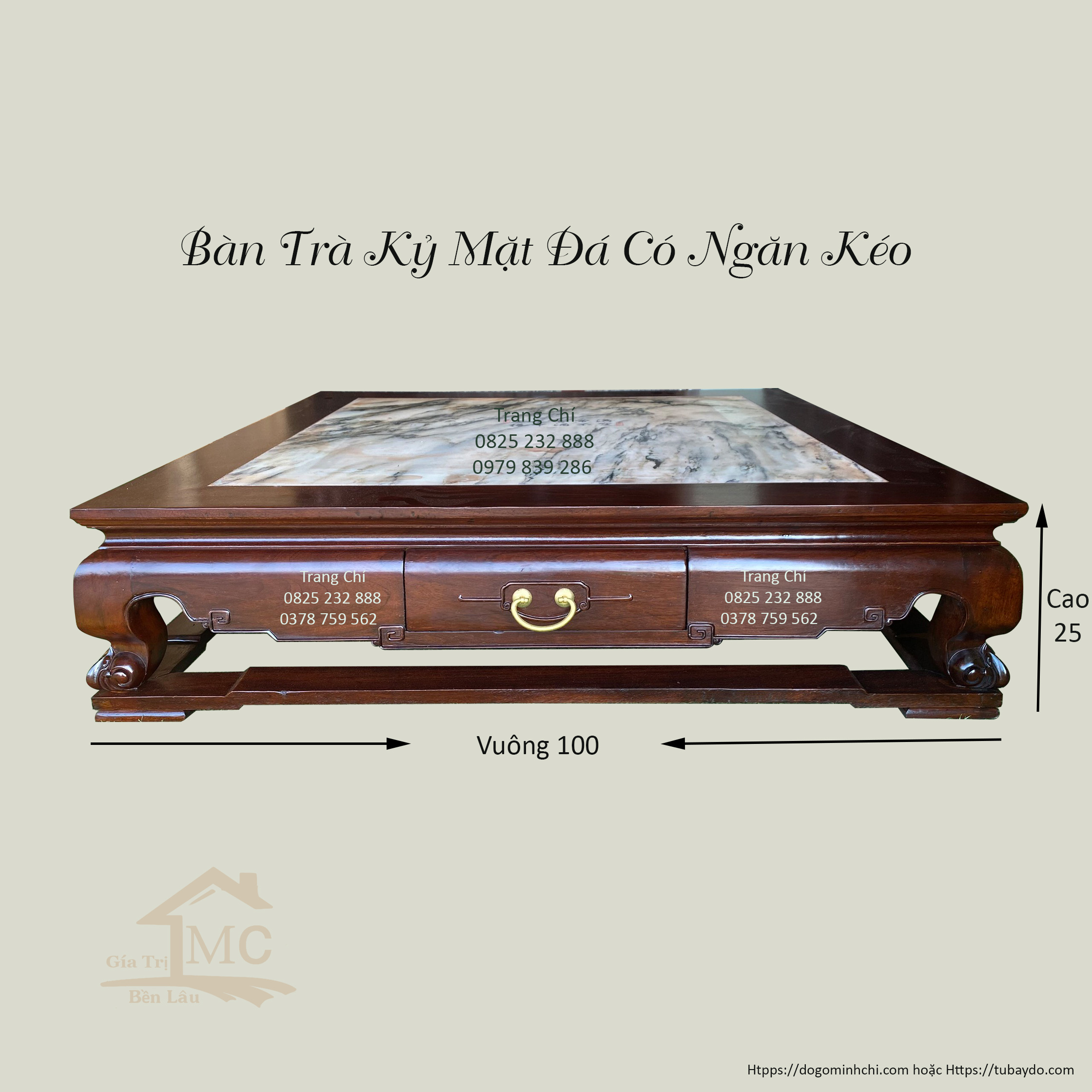 Bàn Trà Kỷ Mặt Đá Có Ngăn Kéo 100 x 25 Gỗ Gụ. Một trong những sản phẩm văn kỷ trà mẫu mới mà bên cơ sở chúng tôi sản xuất và ra mẫu. Sản phẩm với kiểu dáng vuông mặt đá rộng vân tàu chân quỳ và có thêm ngăn kéo nhỏ rất tiện. Một sản phẩm cân đối được làm trên chất liệu gỗ gụ cùng khâu hoàn thiện bóng mịn theo lối cổ sang trọng, tiện dụng