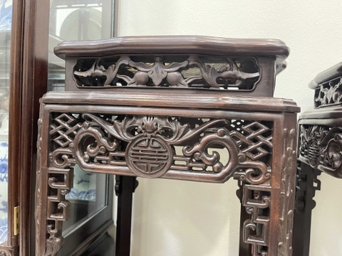 xin giới thiệu tới quý khách hàng Bộ 3 Bàn Đôn Bày Đồ Gỗ Gụ Mặt Đá với nét đục chạm tỉ mỉ, kê đồ sứ kê tivi, đôn kê bình chóe tượng gỗ rất tiện nghi sang trọng. Sản phẩm được làm trên chất liệu gỗ gụ bền đẹp theo lối đánh véc ni, đục chạm hình ảnh dơi chữ thọ. Dưới đây là hình ảnh thông tin chi tiết rõ nét về sản phẩm
