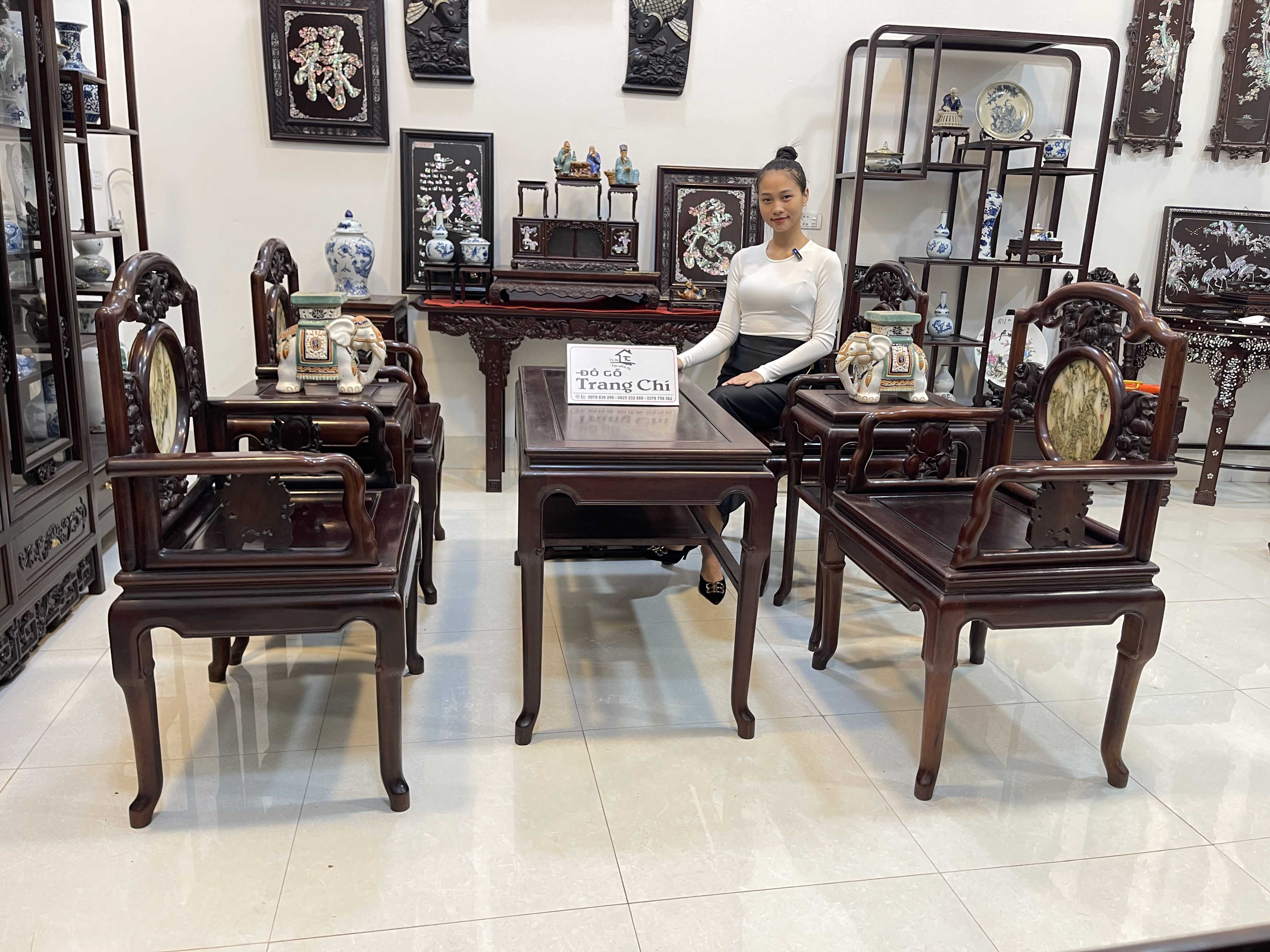 xin giới thiệu tới quý khách hàng một trong những bộ bàn ghế đẹp và kê cực gọn gàng. Mẫu Bộ Bàn Ghế Vách Đào Gỗ Lim Ta được làm theo lối ghế vách móc với những đường khung ống được bo rất cân đôi và mềm mại. Kết hợp đan sen là những hình ảnh đục chạm quả đào giữa trung tâm là những ô đá tròn được chọn lựa từ những viên đá đẹp tạo điểm nhấn cho bộ ghế. Dáng ghế đẹp và được làm mộng vuông rất chắc chắn, độ bền và chịu lực cao. Sản phẩm thích hợp kê trong không gian phòng khách, phòng trà, phòng làm việc đem đến cho không gian gian phòng thêm ấm áp và tiện nghi hơn. Sau đây là hình ảnh và thông tin chi tiết về sản phẩm