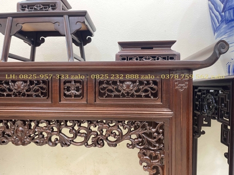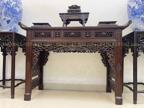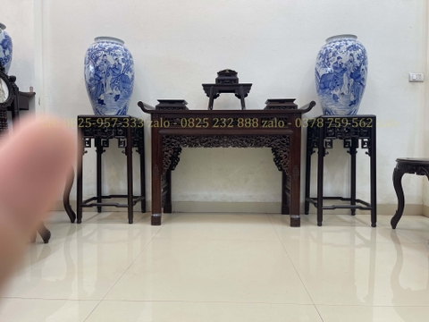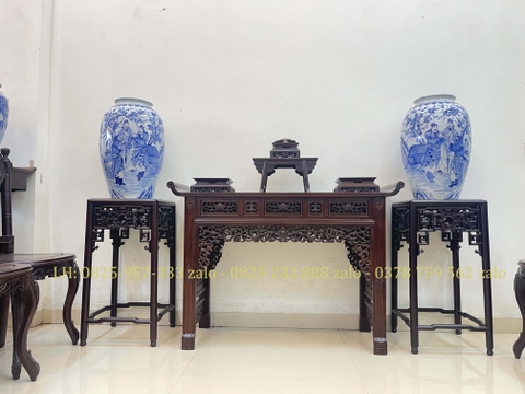 xin giới thiệu tới quý khách hàng một trong những sản phẩm trưng bày đồ rất tiện dụng và sang trọng sản phẩm Bộ Bàn Và Đôn Gỗ Trưng Bày Đồ được làm trên chất liệu gỗ gụ mật bền đẹp. Kết hợp với lối đục chạm tỉ mỉ, sắc nét. Bàn giữa là kiểu dáng tai vảnh với lối đục chạm 2 mặt, 2 bên là dáng đôn chữ A được làm rất tinh tế, nổi bật. Dưới đây là hình ảnh thông tin chi tiết về sản phẩm
