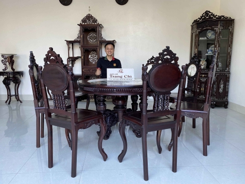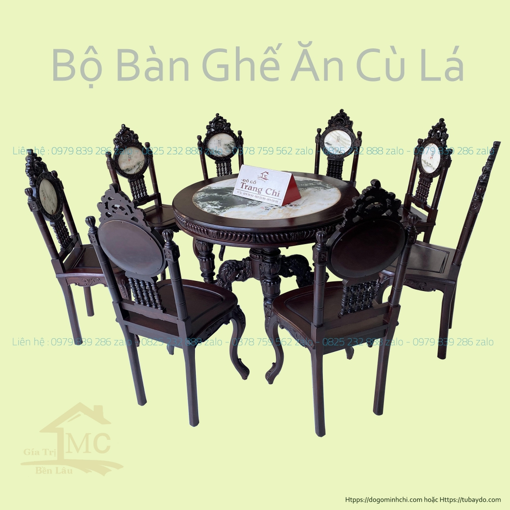 Đồ Gỗ Trang Chí xin giới thiệu tới quý khách hàng Bộ Ghế Ăn Bàn Tròn Rộng Louis được đục chạm tỉ mỉ và nổi bật với nét đục chạm quý phái ghế sang trọng. Bộ Bàn Ghế Ăn Bàn Tròn Lù Lá là một trong những bộ bàn ghế được rất nhiều khách hàng lựa chọn cho nột thất phòng ăn, phòng tiếp khách. Tính ưu việt, tiện dụng và độ bền cao. Chính là đặc điểm cũng như tiêu chí từ khách hàng lựa chọn. Bộ sản phẩm gồm 8 ghế và 1 bàn đường kính bàn rộng giúp quý gia chủ tiếp khách, tiếp đối tác sang trọng và lịch thiệp. Ngoài ra quý vị có thể làm một bộ bàn ghế tiếp khách, một bộ bàn ghế cho, phòng họp, phòng làm việc. Dưới đây là hình ảnh và thông tin quý vị nhé