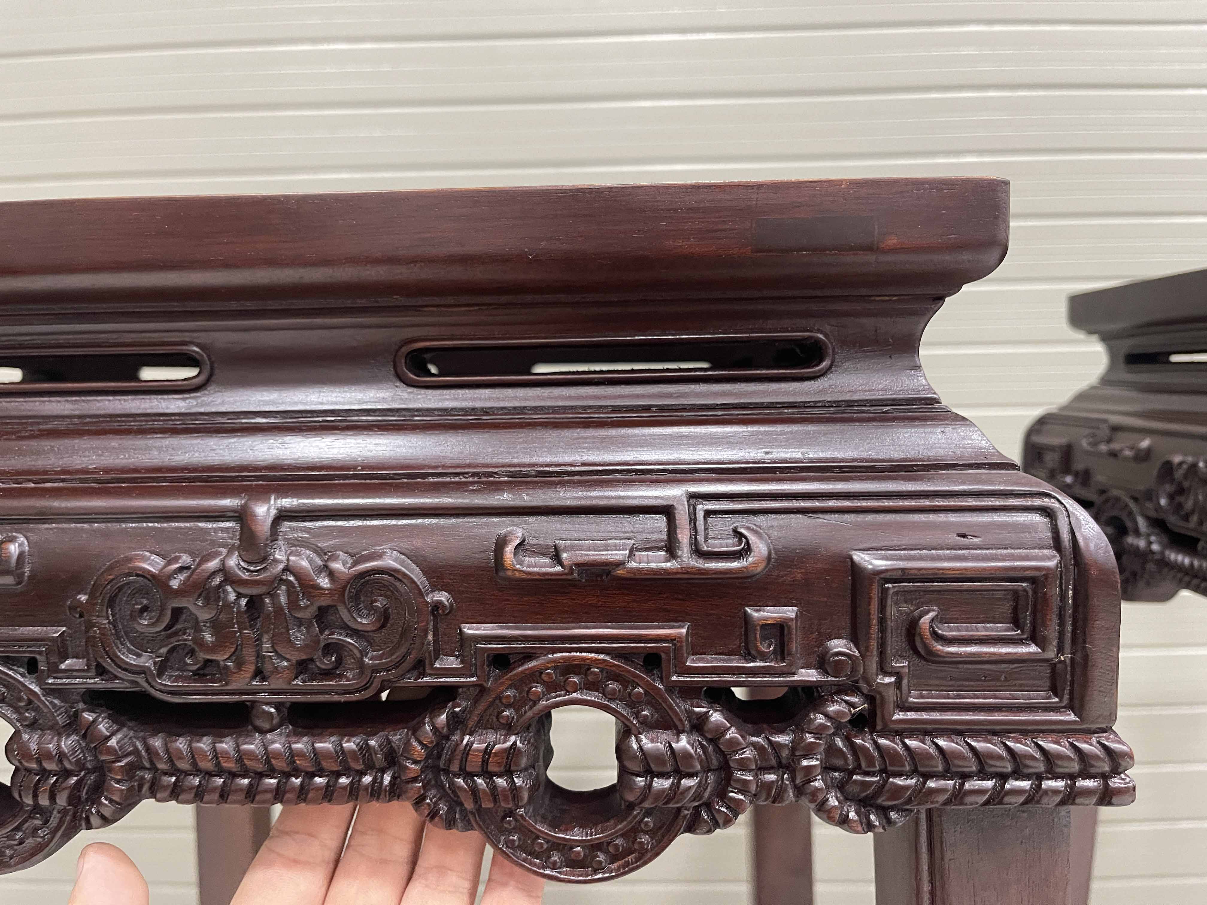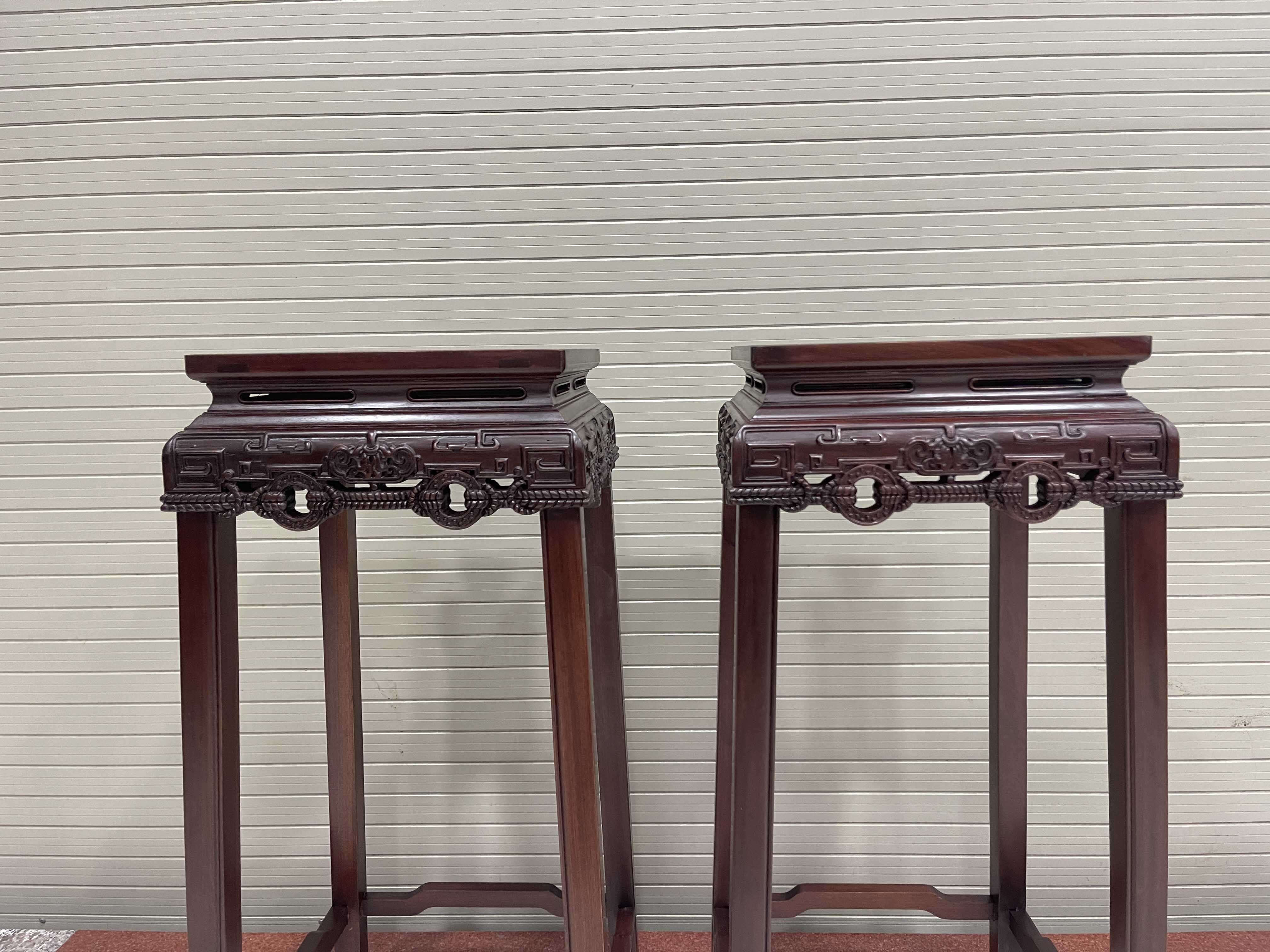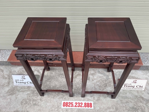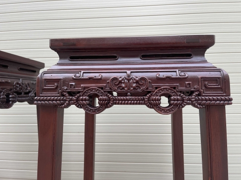 xin giới thiệu tới quý khách hàng một trong những Cặp Đôn Gụ Dáng Chữ A Mộng Thủng được làm trên chất liệu gỗ gụ bền đẹp, giá trị. Kiểu dáng đôn mang phong cách lối cổ với lối đục chạm triện, dải dây chạy bao quanh rất nổi bật, độc đáo. Đặc biệt cặp đôn chữ A còn được làm với lối đục chạm mộng thủng, chắc khỏe. Sản phẩm kê đồ sứ, tượng gỗ, cây bonsai, dưới đây là hình ảnh thông tin chi tiết về sản phẩm