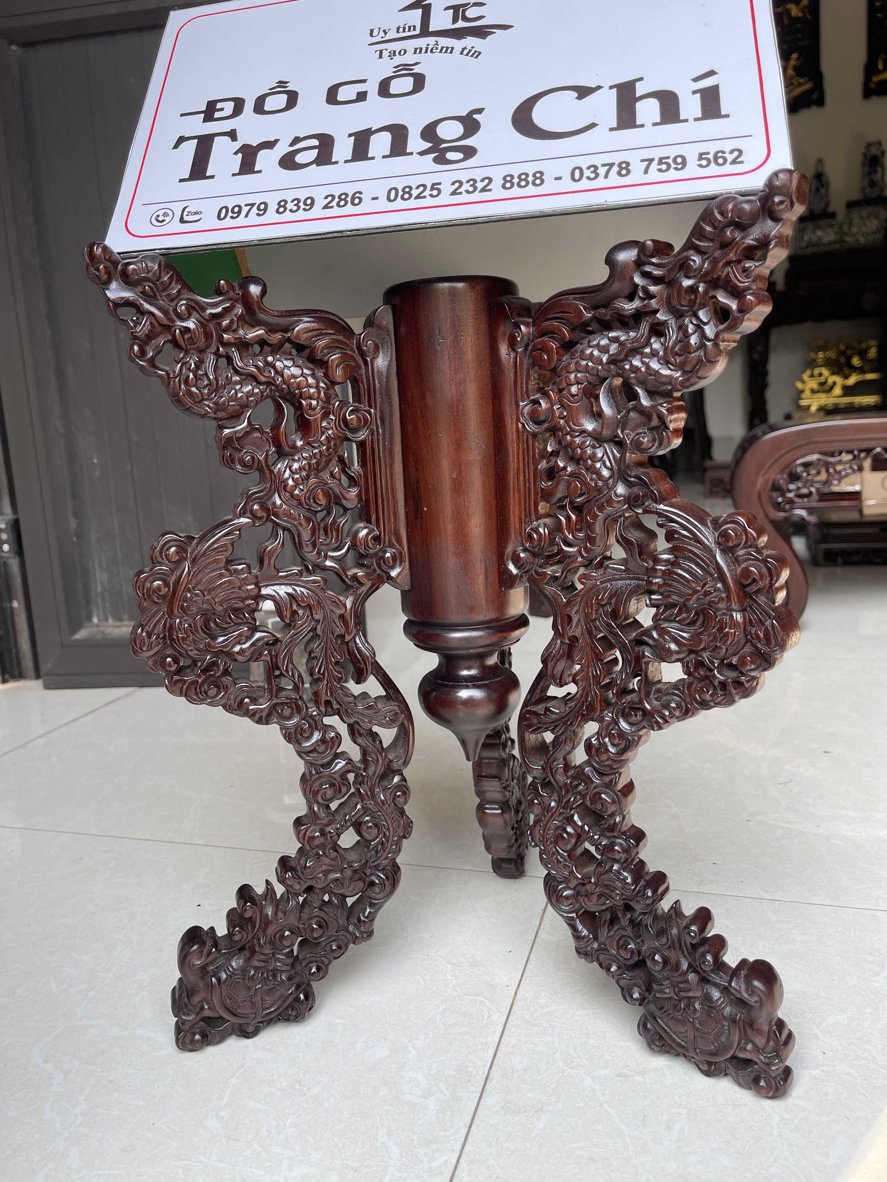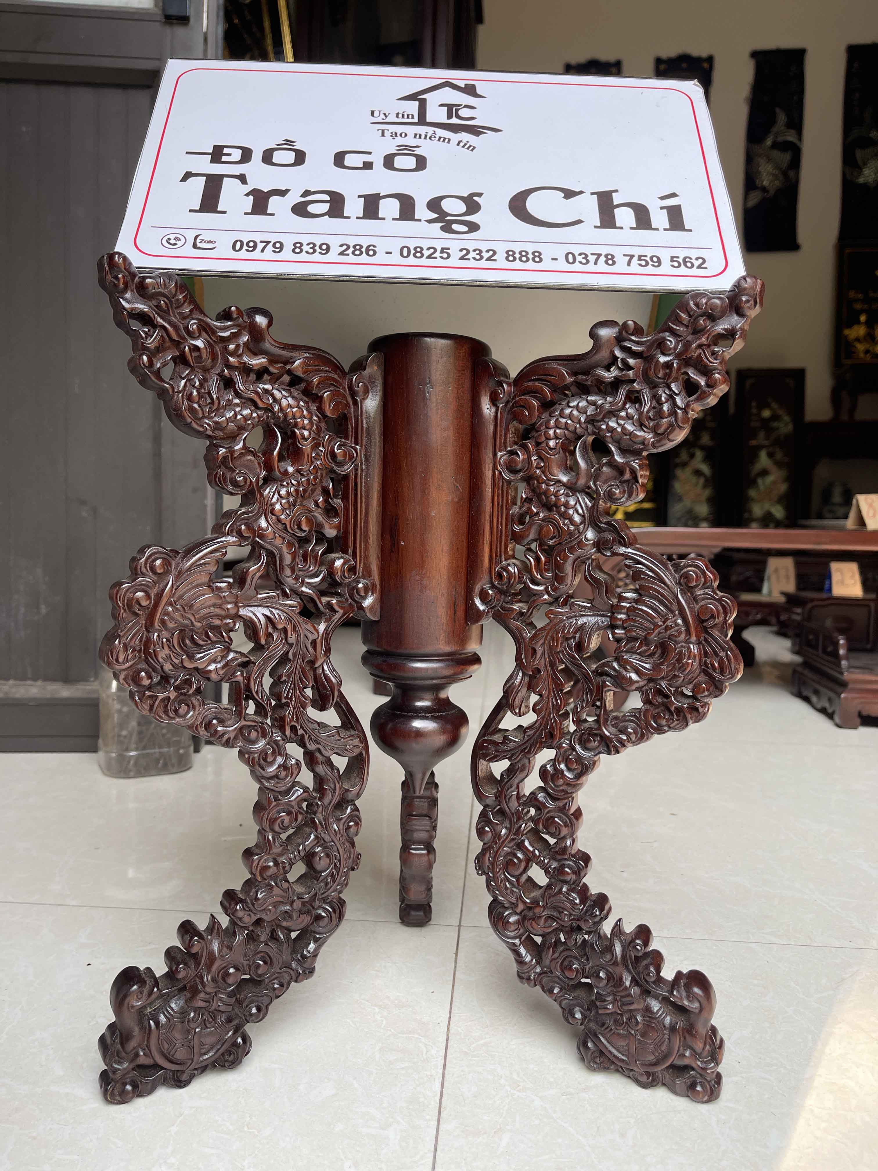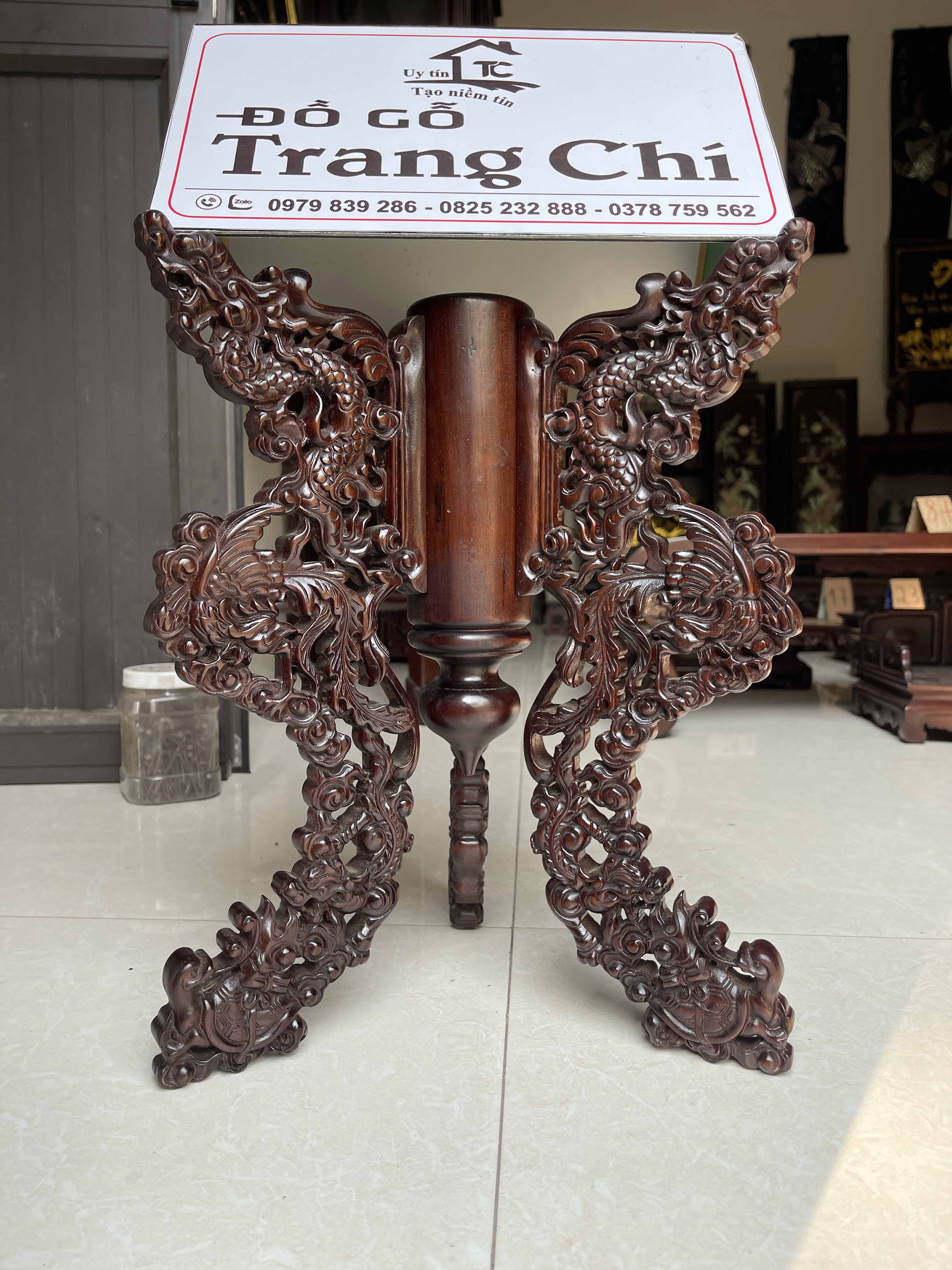 Chò 3 Chân Kê Đĩa Kê Chậu Chạm Nho Sóc là một mẫu trò 3 chân được đục chạm tứ diện. Mẫu chò được dùng trong làm giá kê chân đĩa, kê chậu, kê hoa quả trên ban thờ, kê chậu cây người xưa thì hay dùng trong làm giá kê chậu rửa. Giờ đây mẫu chò còn được làm là một sản phẩm trang trí với nét thẩm mỹ và kĩ thuật được ứng dụng trong nhiều cách trưng và bày biện. Bên cơ sở em sản xuất với số lượng nhiều để đáp ứng nhu cầu khách hàng ngày càng ưa thích những sản phẩm được làm từ gỗ thẩm mỹ với độ bền cao