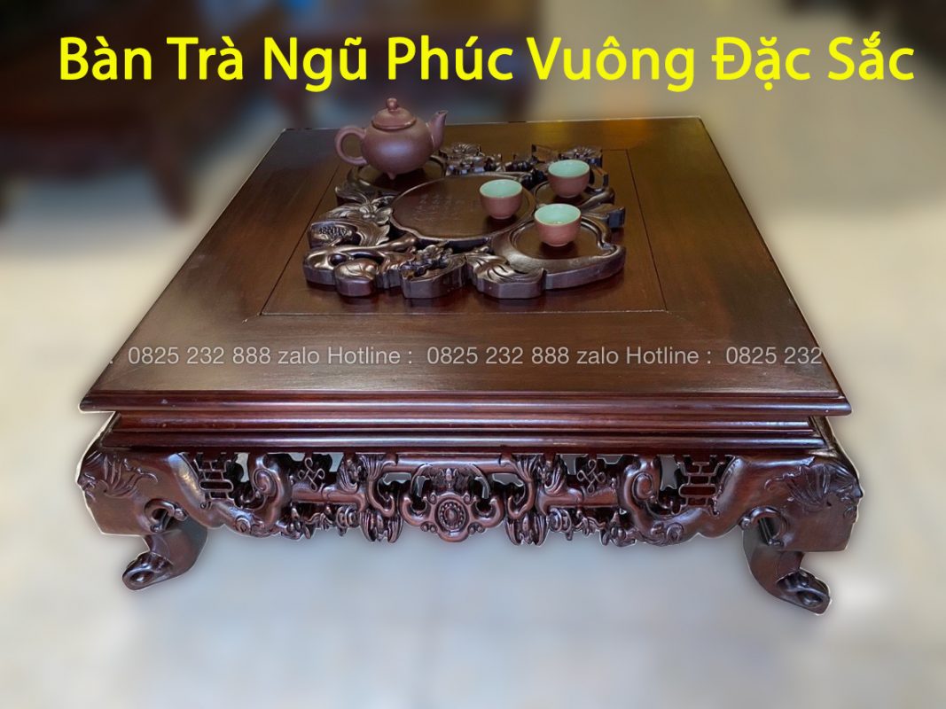 Bàn trà được cơ sở đục chạm dơi thọ mang ý nghĩa là Phúc Khánh - tăng sự hạnh phúc, sung sướng và may mắn gấp bội. Hình ảnh con dơi ngậm chữ thọ mang đến một thông điệp mà ai ai cũng mong muốn có được, đó chính là sự giàu có, sung sướng, hạnh phúc và sống lâu trăm tuổi.
