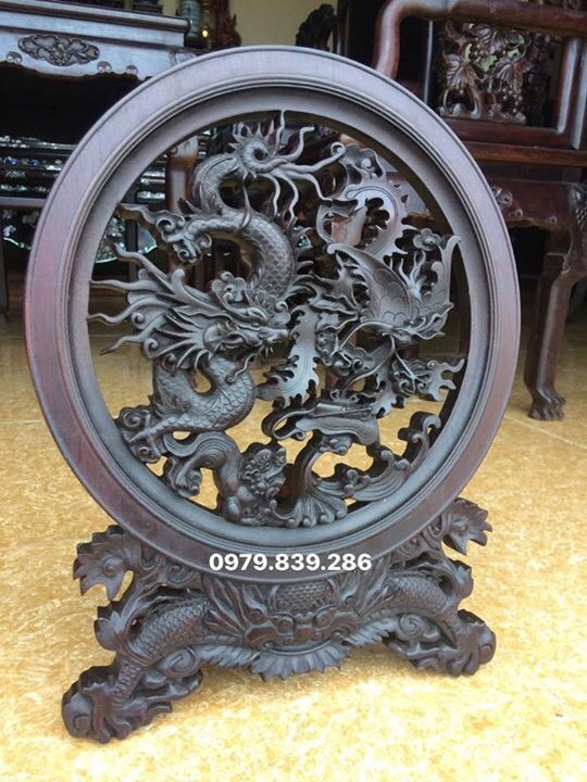 Chơi phong thủy đĩa gỗ mỹ nghệ tứ linh