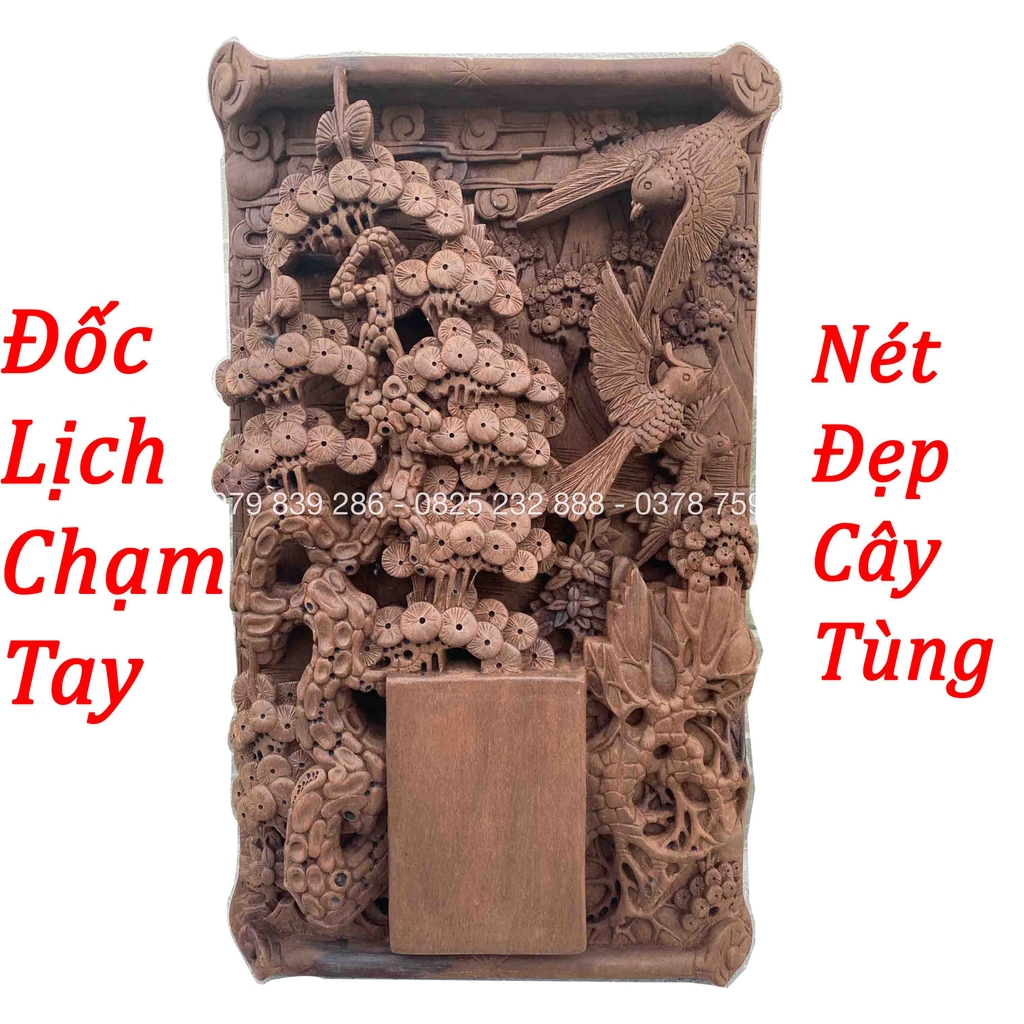 Đốc lịch được cơ sở chạm với hình ảnh tùng hạc. Sản phẩm được các bàn tay vàng của cơ sở đục tay hoàn toàn
