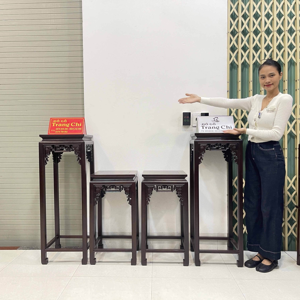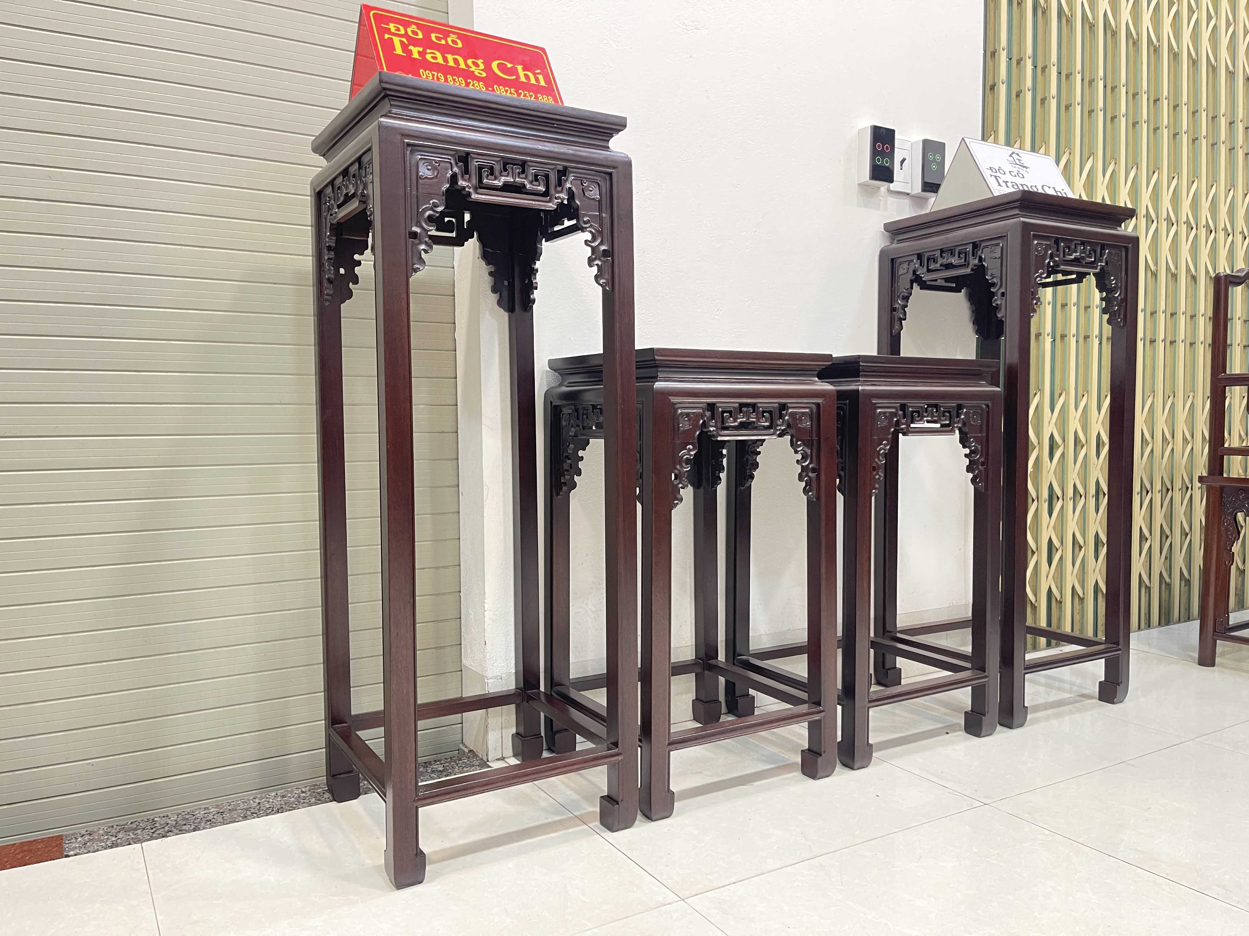 xin giới thiệu tới quý khách hàng mẫu Đôn Gỗ Bày Đồ Cao Thấp được làm theo lối triện xúc và được làm trên chất liệu gỗ gụ, đục chạm vanh thoáng nổi bật. Cặp gồm kích thước cả cao và thấp giúp quý khách đa dạng trọng sự lựa chọn. Chất liệu được cơ sở chúng em làm trên chất liệu gỗ gụ, nổi bật và bền bỉ. Dưới đây là hình ảnh và thông tin chi tiết rõ nét về sản phẩm
