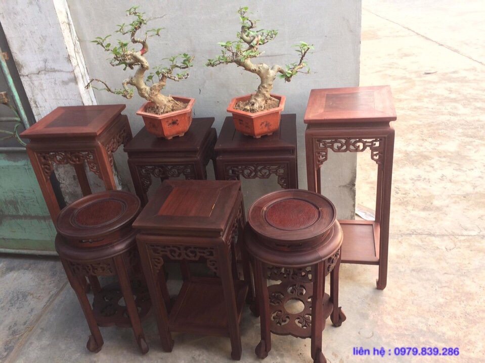 Đôn gỗ vuông có kiểu dáng theo hơi hướng truyền thống, dùng để kê tượng, đồ sứ, cây bonsai, tôn lên vẻ sang trọng, sự quý giá của đồ vật.