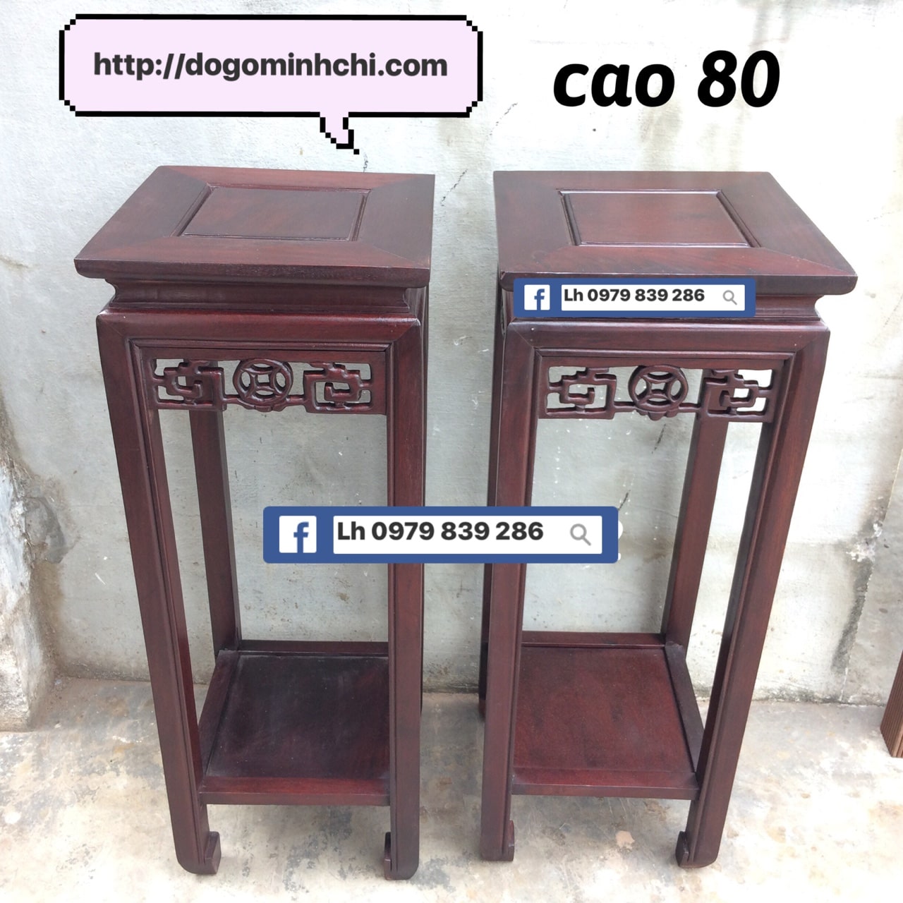 Kích thước: Có 3 loại cao 60, 70, 80 Đôn vuông mặt vuông 30 cm