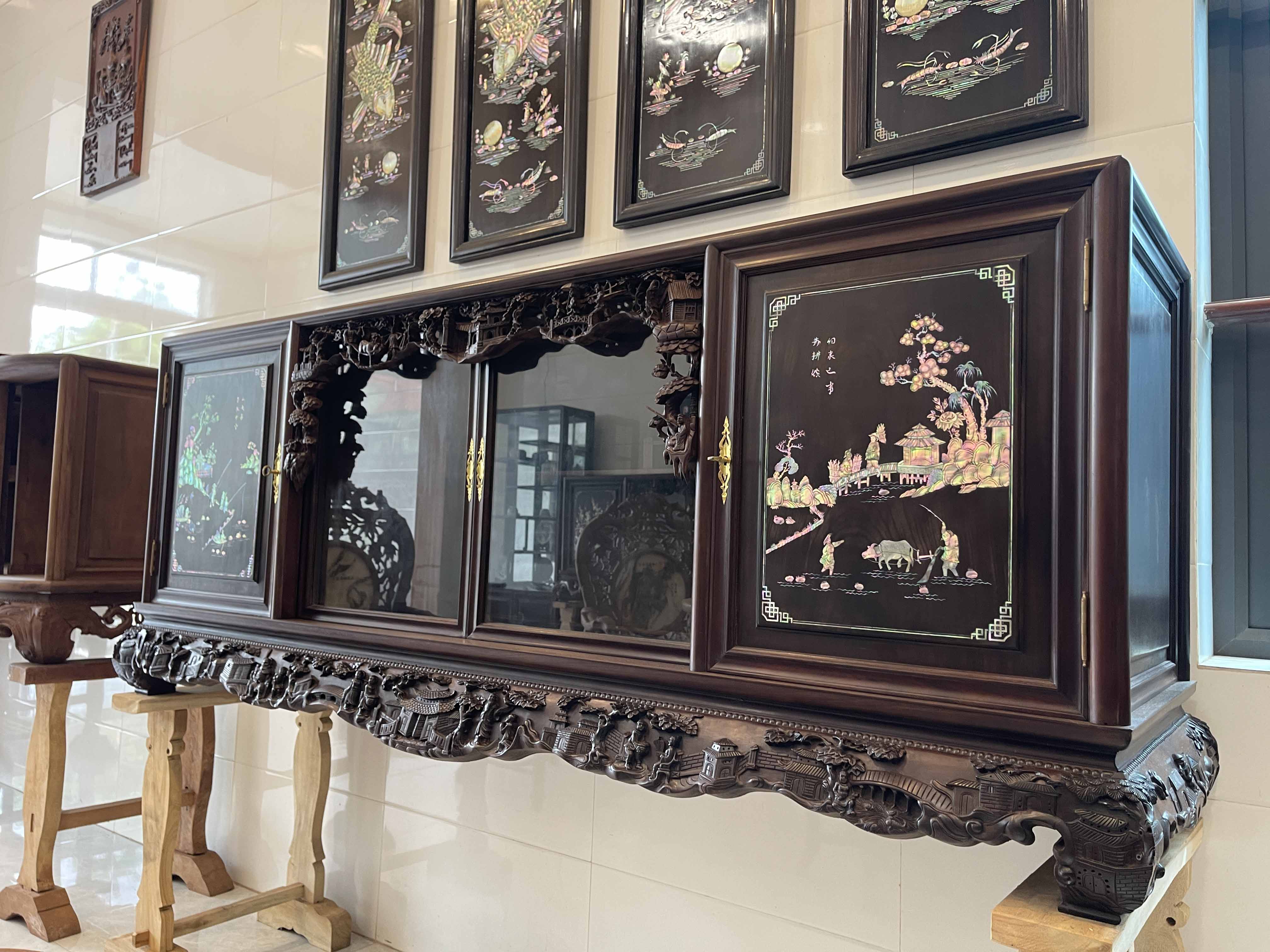 một trong những sản phẩm được làm rất chau chuốt và tinh tế Mẫu Tủ Chè Gụ Tích Sĩ Nông Công Thương được người nghệ nhân đục chạm và kết hợp với đôi cánh cũng được khảm tích, tỉ mỉ và sắc nét mỗi đường tỉa đều mang những nét tinh tế khác nhau.Sản phẩm tủ chè còn mang đến sự sang trọng và giá trị đặc biệt là rất nổi bật cho không gian khi được trưng bày.Dưới đây là hình ảnh và thông tin chi tiết rõ nét về sản phẩm
