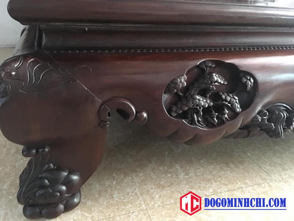 - Chi tiết bốn góc trạm biểu tượng Dơi chân được gia công rất gọn và cong tạo sự mềm mại khi nhìn vào tổng thể. Sập ba bông dài 2m20 rộng 1m80 được đánh veni (còn gọi là đánh xi theo lồi cổ) lên giữ được tem gỗ và vân gỗ rất rễ sử lý như vết m bẩn, ố nước, trầy xước nhẹ chỉ cần lọ xi (hay còn gọi là xi đánh giầy) quét lên khoảng 15phut lấy dẻ lau lại là bóng đẹp như lúc đầu.