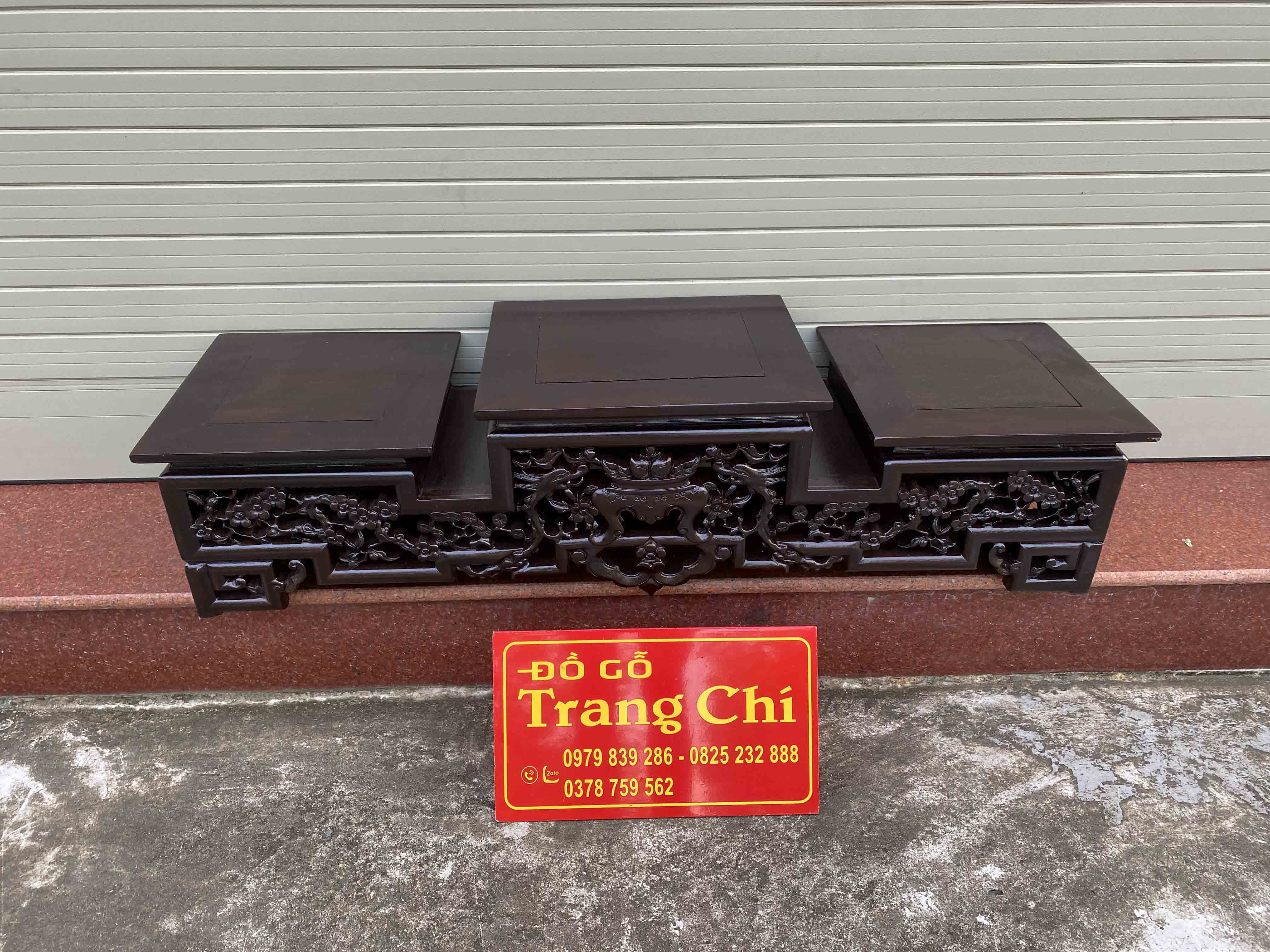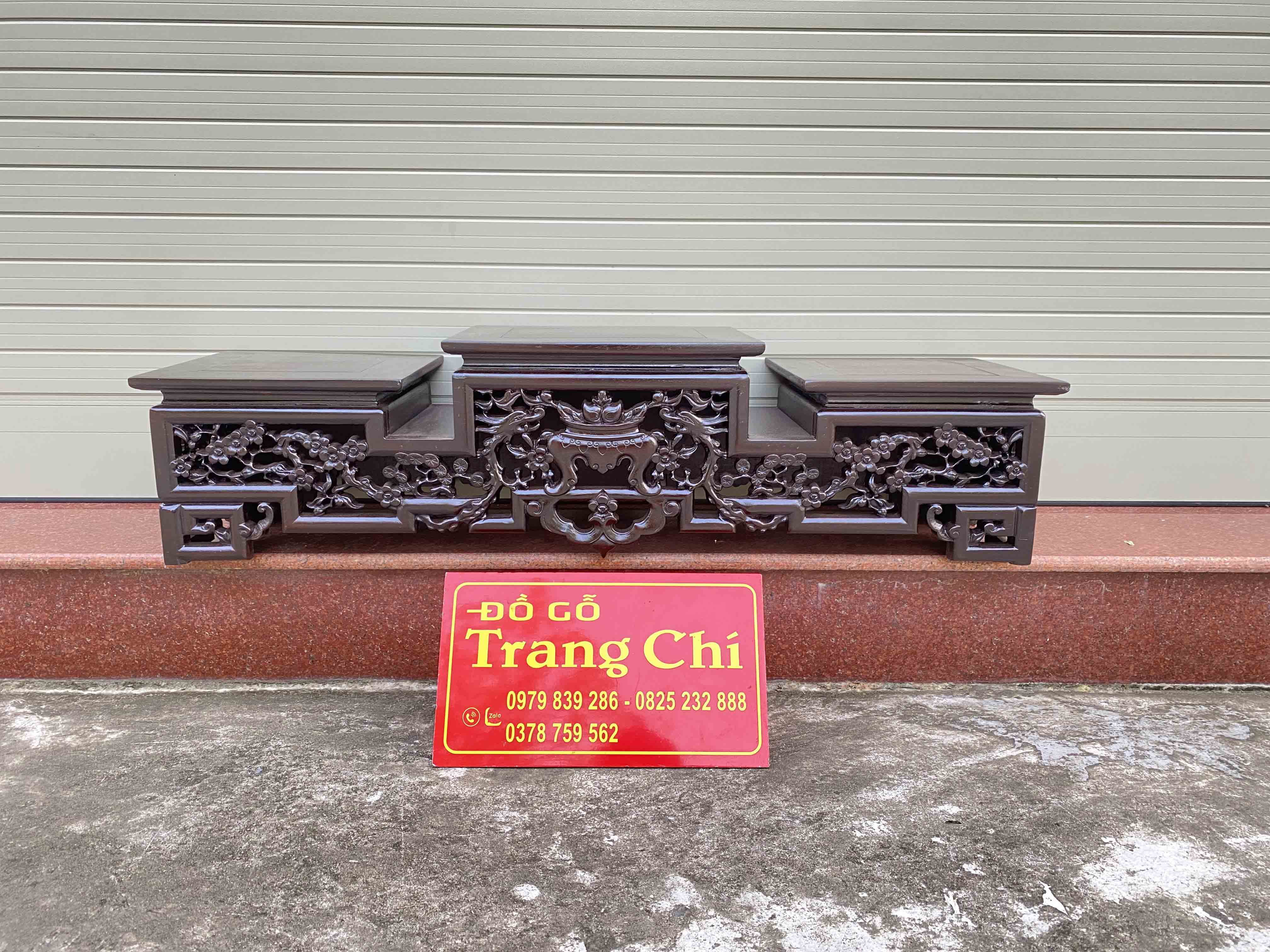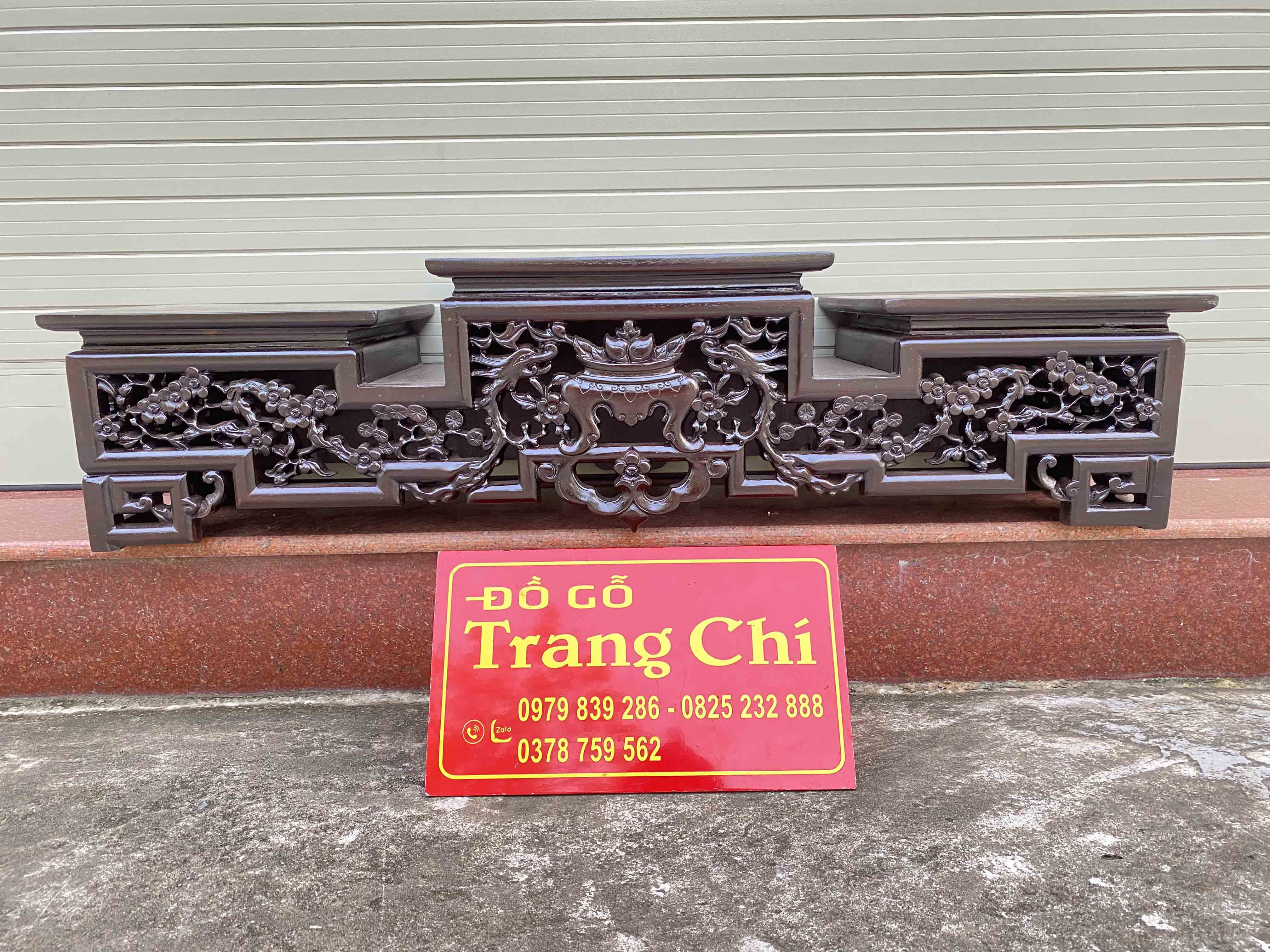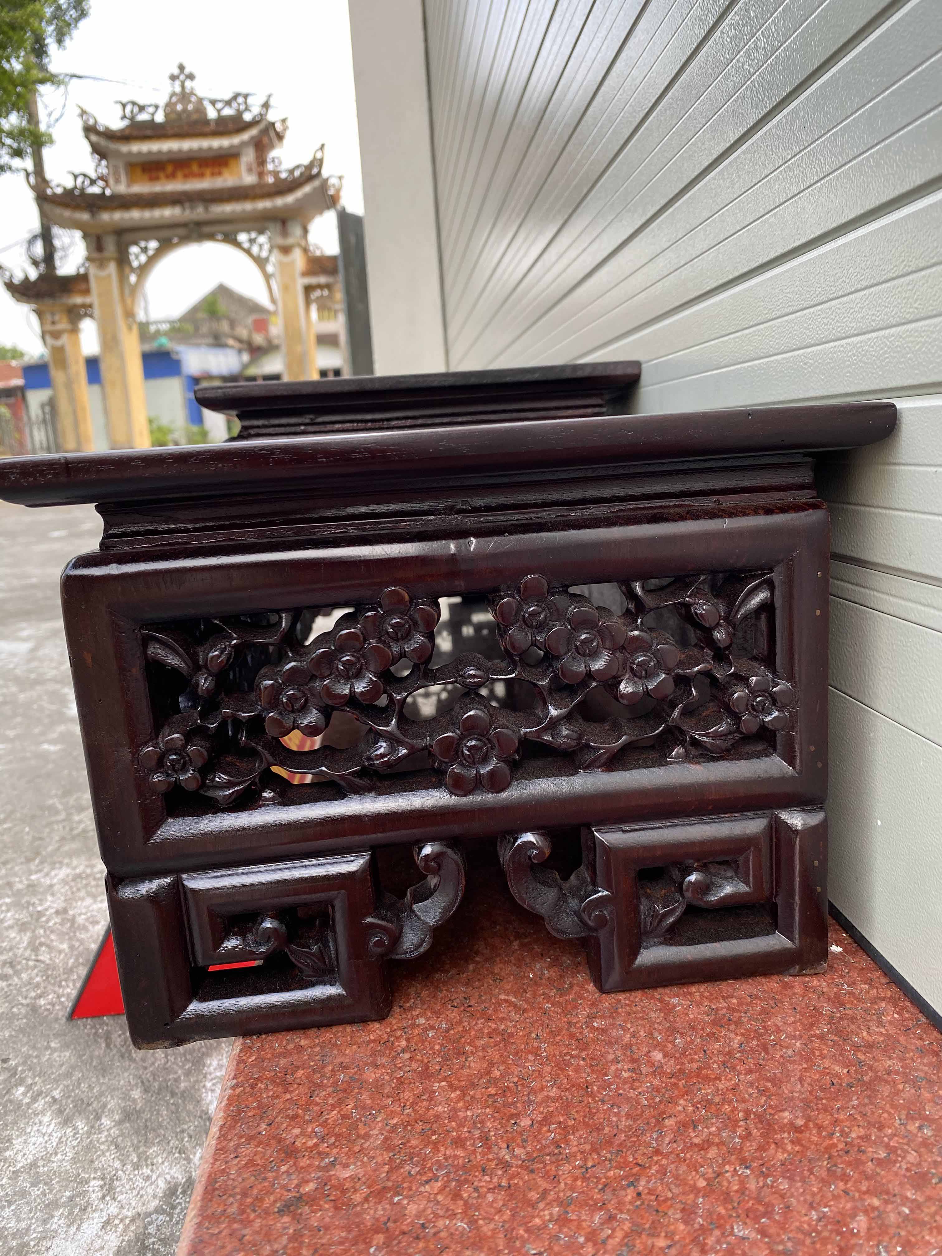 xin giới thiệu mẫu Tam Sơn Hoa Mai Kê Tam Đa Kê Đồ sản phẩm được làm trên chất liệu gỗ gu. Mẫu Tam Sơn đục chạm 3 mặt nổi bật có thể kê trên tủ kệ, bàn, hoặc bàn thờ rất tiện. Dưới đây là hình ảnh thông tin rõ nét về sản phẩm