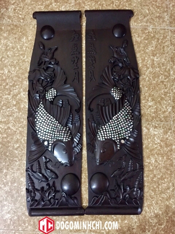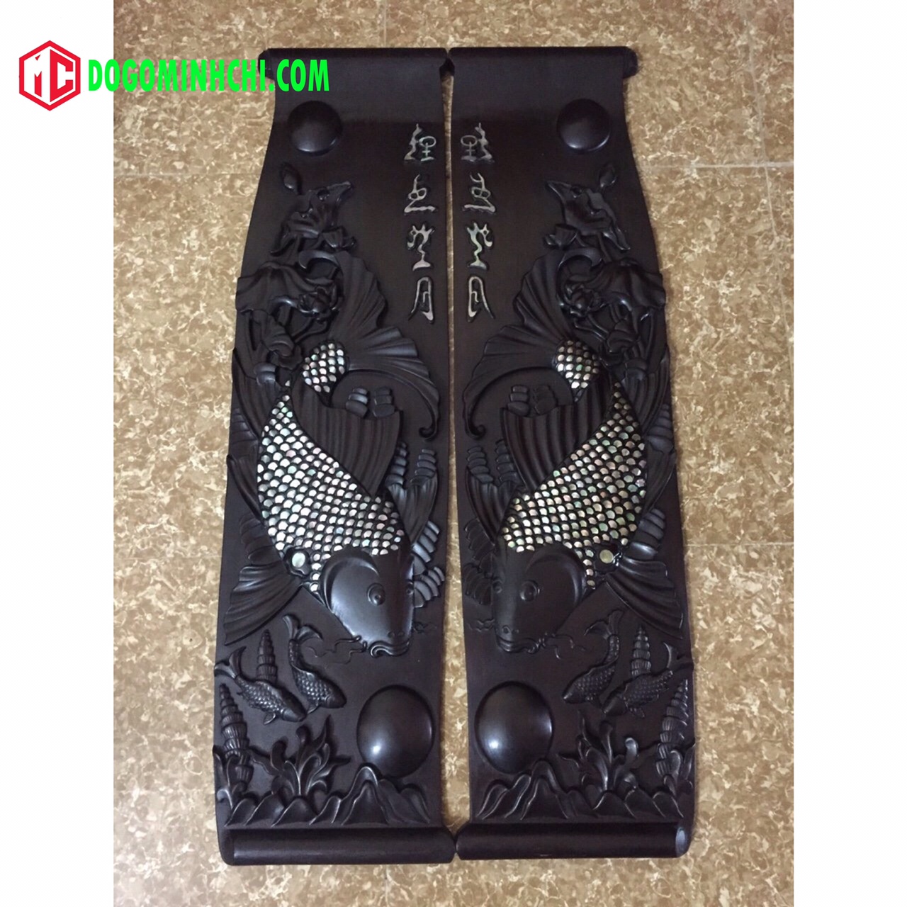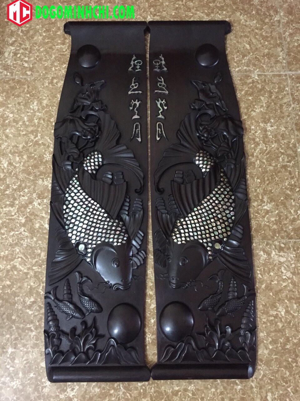 Tranh Cá Chép Khảm Ốc giờ đây còn được khảm ốc ở thân cá càng làm nổi bật đôi cá hơn nữa.