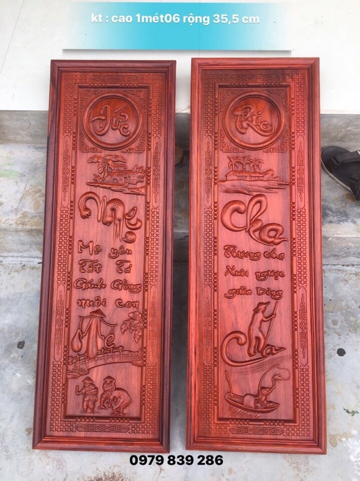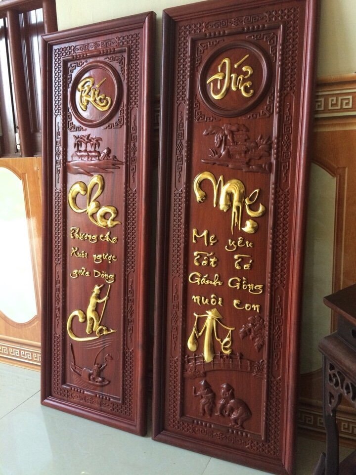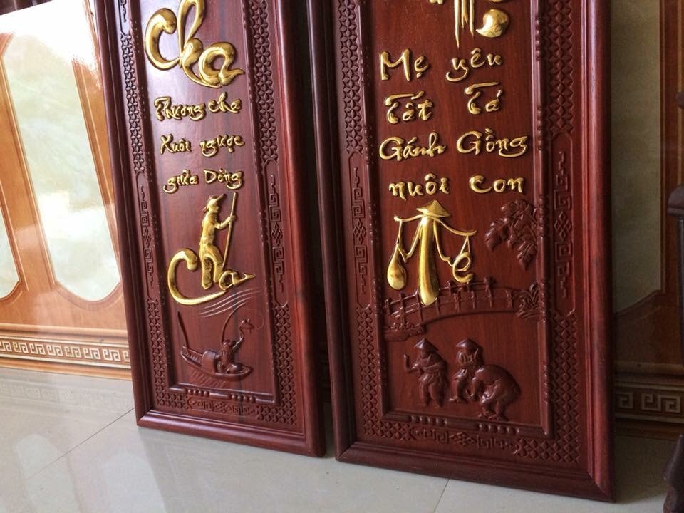 - Tranh Cha Mẹ Gỗ Hương Ý Nghĩa, một trong những bức tranh câu đối đẹp và tỉ mỉ với những câu nói đã đi vào lòng người Tranh Cha Mẹ Gỗ Hương còn được hoàn thiện trên chất liệu gỗ tốt lên đảm bảo hơn về thẩm mĩ và độ bền