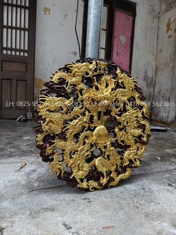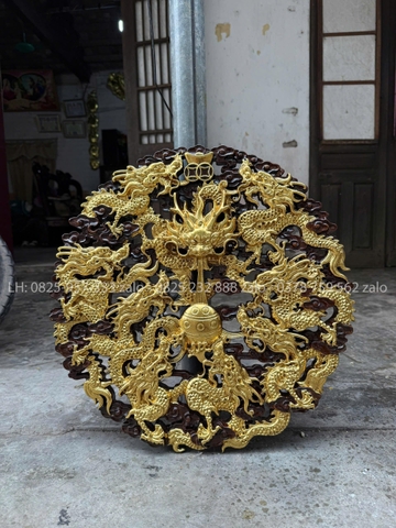 xin giới thiệu tới quý khách hàng mẫu Tranh Cửu Long Tranh Châu Sơn Thiếc Vàng Gỗ Lim với hình ảnh đẹp, ý nghĩa. Kiểu dáng tròn đục chạm thoáng kết hợp những những hình ảnh rồng được sơn thiếp vàng nổi bật bắt mắt hơn. Sản phẩm kiểu dáng tranh tròn treo trong không gian phòng trà, phòng khách, làm quà tặng biếu bạn bè, đối tác. Dưới đây là hình ảnh và thông tin chi tiết về sản phẩm