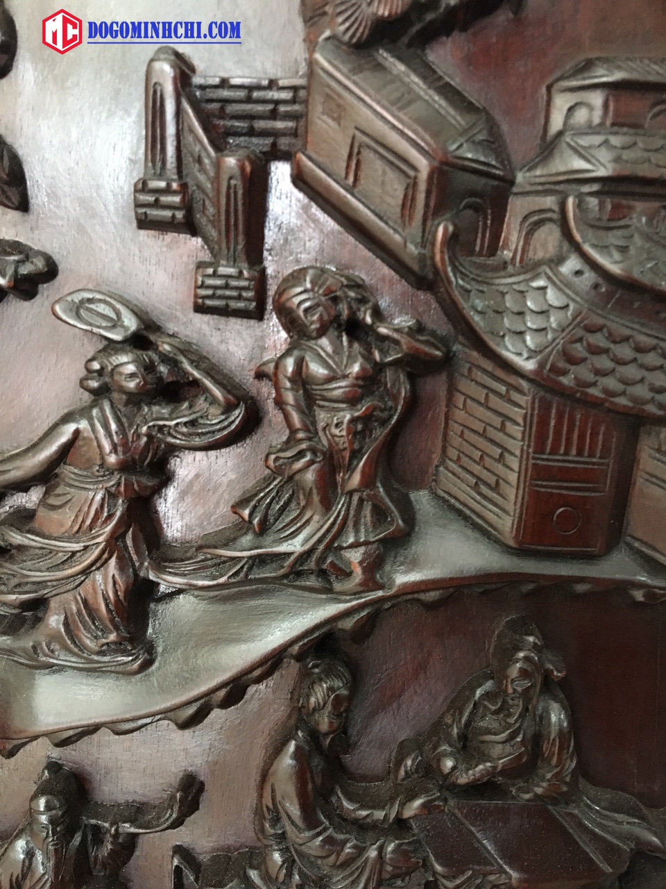 Tủ Chè Gỗ Gụ "Chạm Tích" được chạm tích ba mặt tỉ mỉ do những người thợ làng nghề Hải Minh trực tiếp sản xuất hoàn thiện kỹ lưỡng.