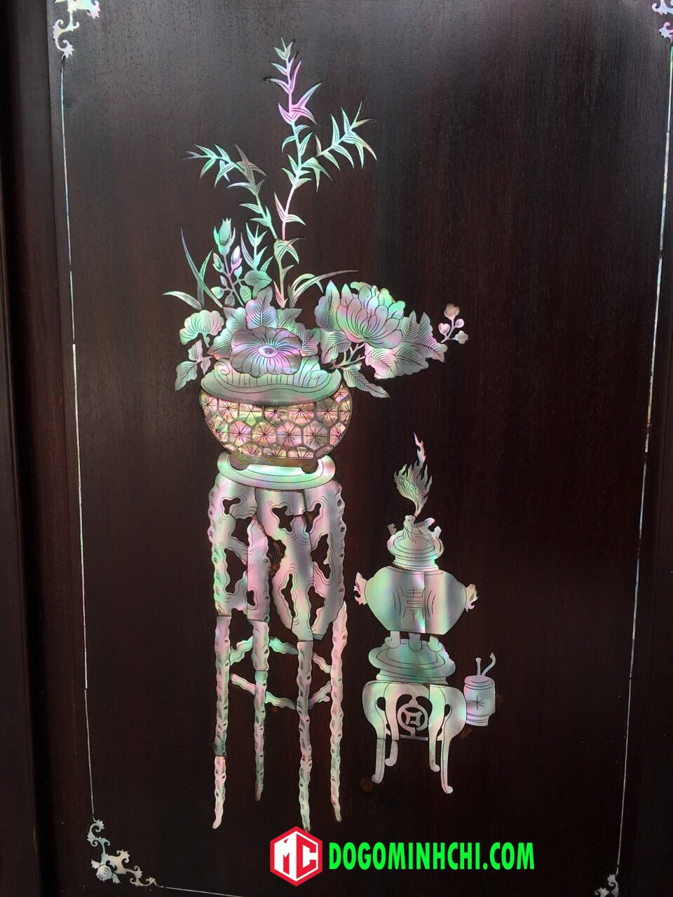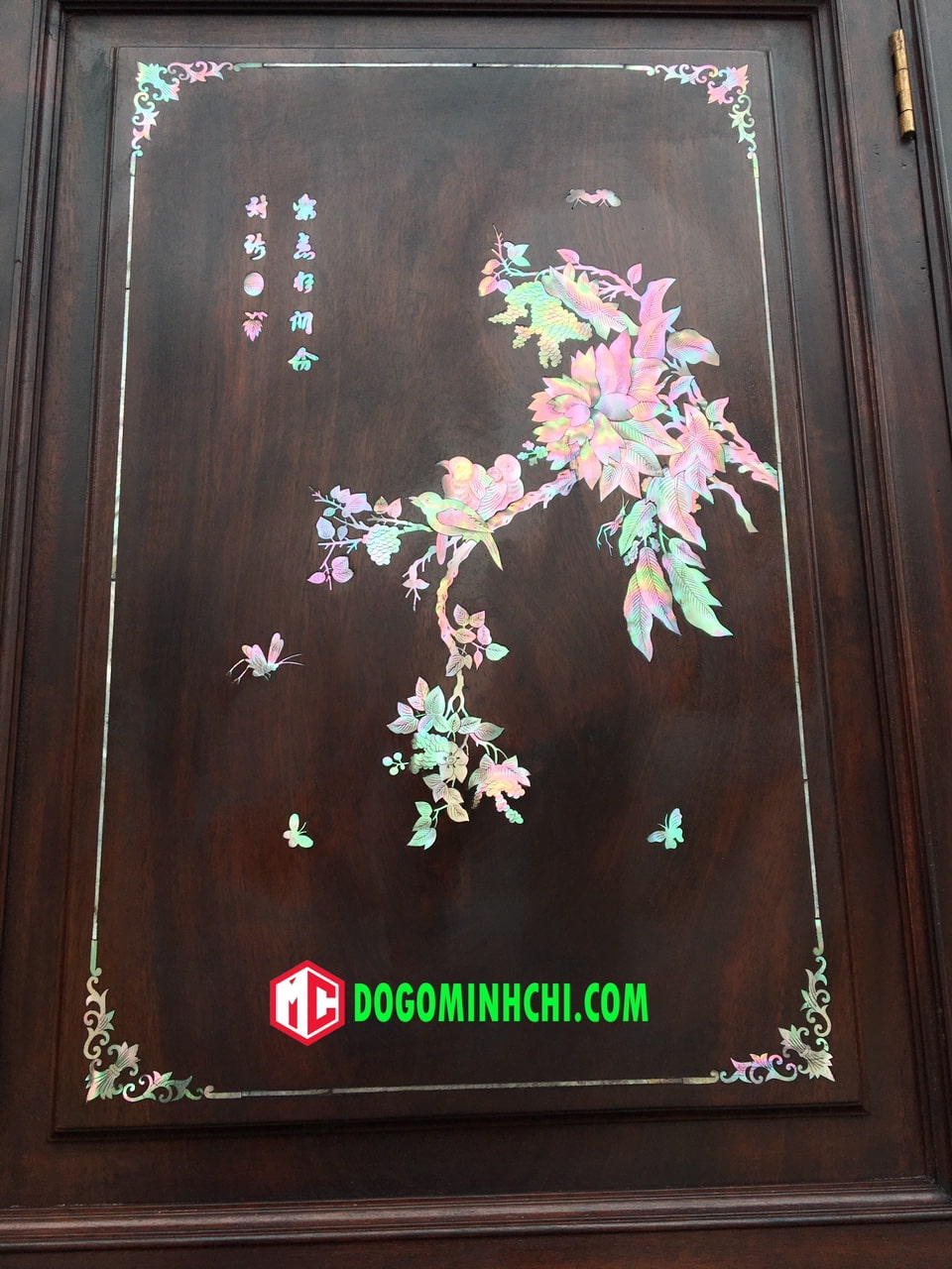 - Tủ Mẫu 2: Tủ Bầy Đồ To Khảm Mai Treo Hai Thớt