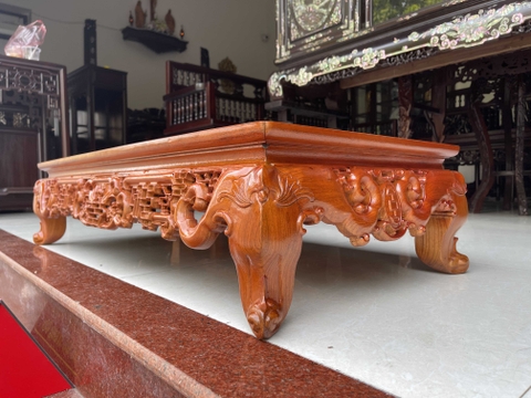 xin giới thiệu tới quý khách hàng mẫu văn kỷ bệt bàn osin chân quỳ gỗ gụ được thiết kế theo kiểu dáng bàn trà ngồi bệt rất tiện dụng và sang trọng, nét đục chạm tứ diện là nét kết hợp với kiểu dáng chân quỳ đục chạm ngũ phúc được hoàn thiện theo tông màu sáng nổi bật. Bàn không chỉ làm bàn trưng bày còn làm mẫu bàn viết thư pháp bàn trà đạo ngồi quây quần rất tiện dụng. Dưới đây là hình ảnh và thông tin chi tiết về sản phẩm